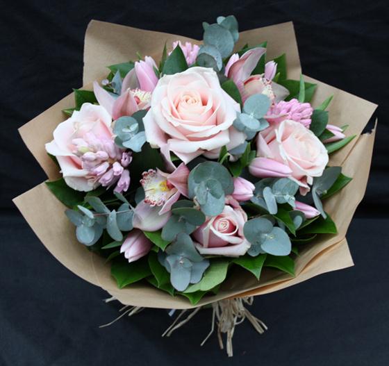 A sweet spring selection of roses, tulips and scented hyacinths make up this wonderful bouquet.